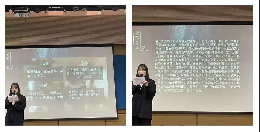 “死了的人已死去,活着的人继续好好的活着。”本次比赛,经济学院的“四带一”组给我们带来的是余华先生的经典长篇小说《活着》 。他们以饱含深情的语言,为我们讲述了小说的大概内容,让我们看到了在大时代背景下,随着内战、三反五反、大跃进、文化大革命等社会变革,人们经历了怎样的痛苦与磨难,又让我们了解到这样的生活又带给人们怎样的启示。这篇小说赞颂了主人公福贵身上强烈的“活着精神”,彰显了活着的意义。