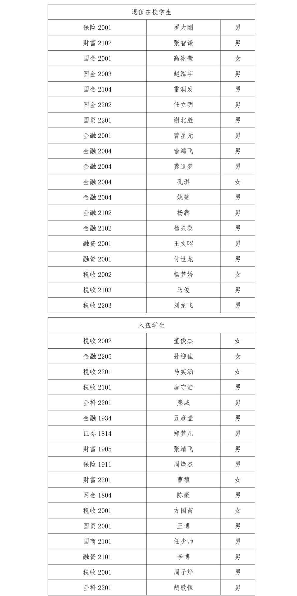经济学院参军入伍光荣榜