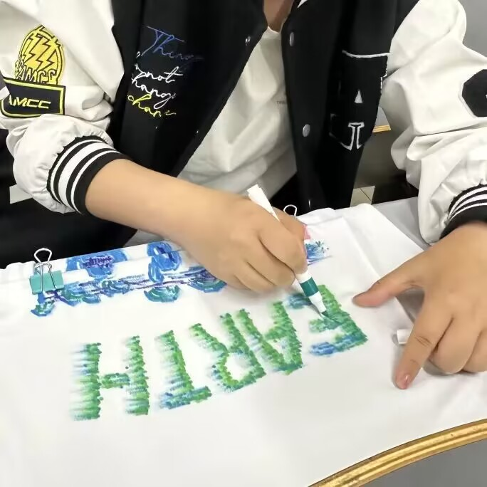 比赛开始,选手们在五十分钟内尽情发挥自己的想象力,设计出独特的文创作品。他们凭借一支画笔和一双巧手,让原本普通白净的衬衫色彩纷呈,更显设计感。创作完成后,选手们依次上台展示各自设计的绘画作品,并介绍设计理念及初心。整场比赛赏心悦目,精彩不断,选手们的创造力被不断挖掘,本次比赛也成功落下帷幕。