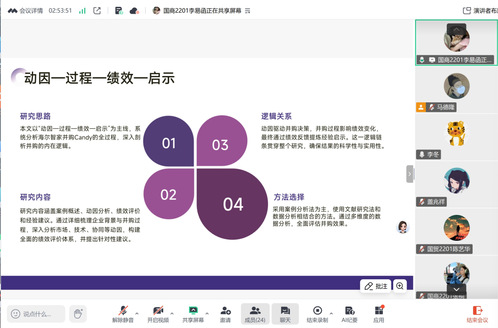 在答辩环节中,各系学生均以PPT形式进行汇报,从论文选题的背景与研究意义切入,系统阐述国内外相关文献的梳理情况,进一步提出研究思路、方法和预期创新点。汇报过程中,同学们对研究选题的时效性与现实价值进行了深入分析,体现出经济学院学生关注经济与社会发展的学术视野。