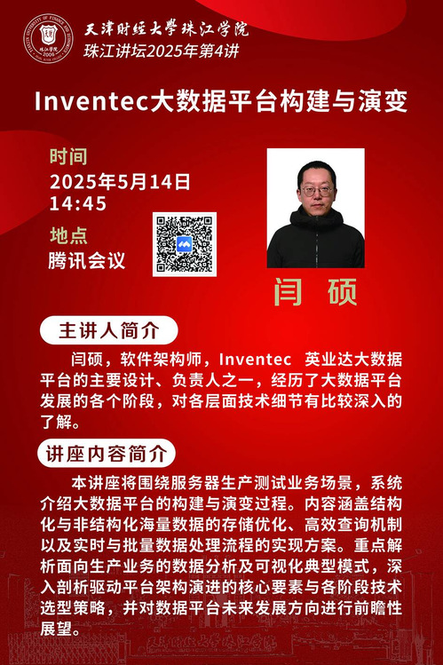 珠江讲坛预告| Inventec 大数据平台构建与演变
