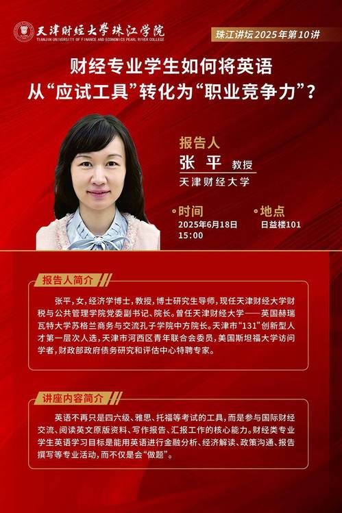 珠江讲坛预告|财经专业学生如何将英语从“应试工具” 转化为 “职业竞争力”?