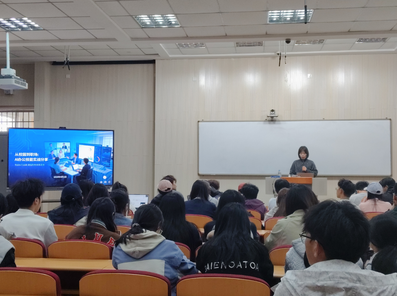 2.校园项目全流程AI实战赋能。以“智能校园助手”小程序开发为例,现场演示AI全流程提效,用Kimi、扣子平台完成需求规划与技术方案;用Cursor、通义千问快速编写代码、修复Bug;用豆包AI、WPS AI自动生成项目报告与数据图表;用扣子平台一键生成答辩PPT,大幅降低实现成本。