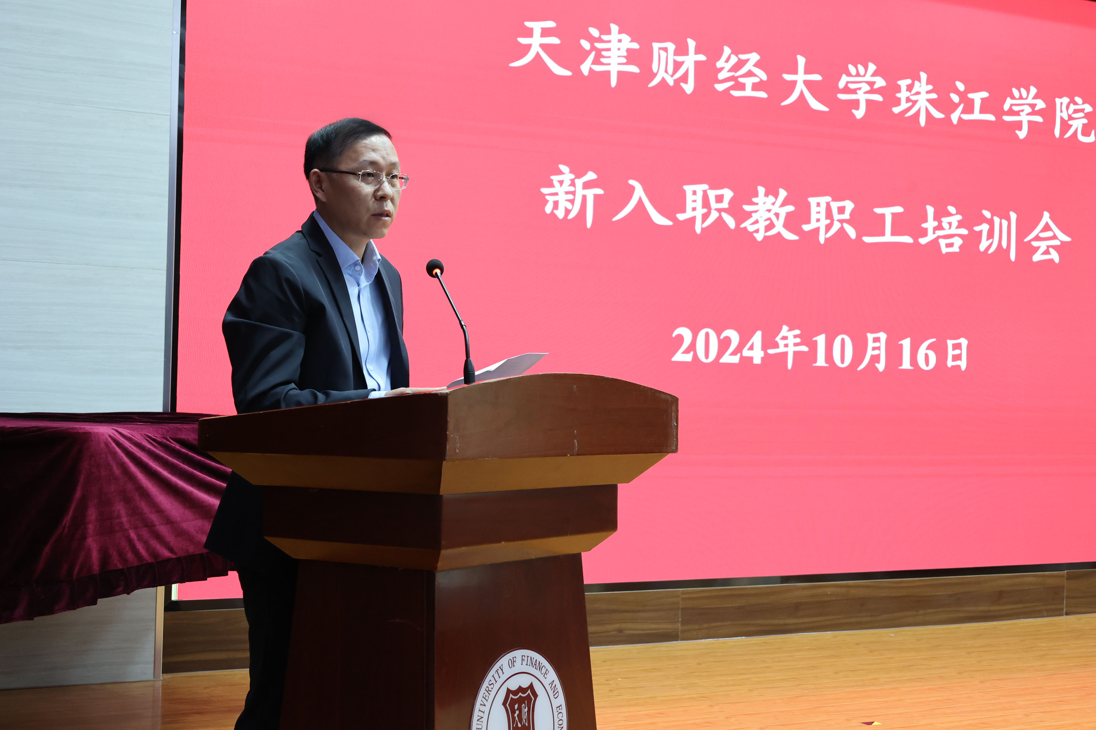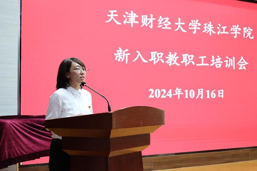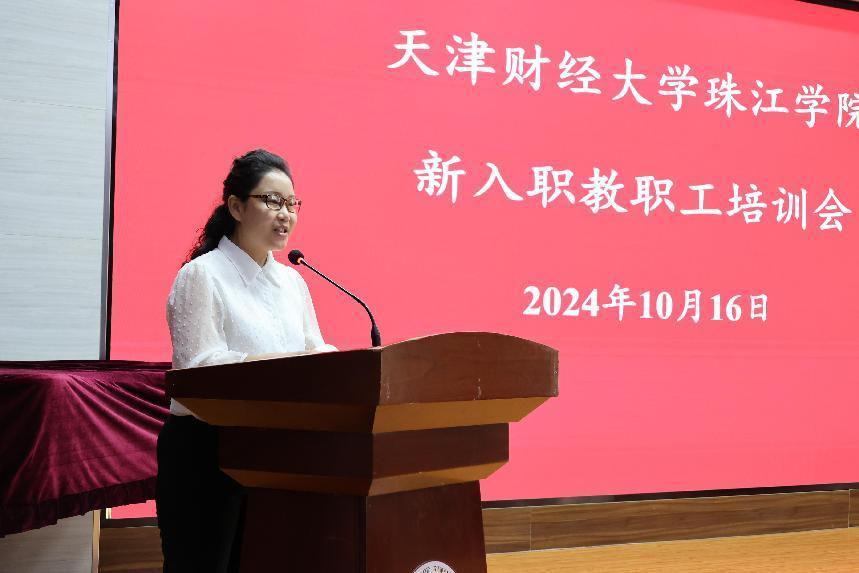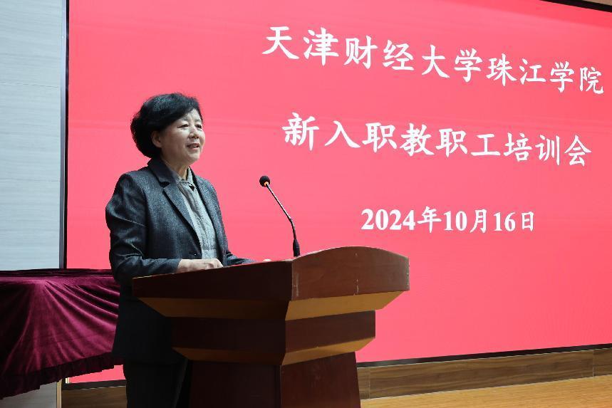 院长任碧云教授以“弘扬教育家精神 锻造新时代良师”为题,为2024年全体新入职教职工讲授“入职第一课”。她代表学院对新入职教职工表示热烈欢迎和真诚祝贺,并就学院发展历程和建设规划进行详细介绍,鼓励大家为努力构建学院“1+6+3”人才培养体系和十大高质量发展体系贡献智慧和力量。她对新入职教职工提出殷切期望:铸牢师者之魂,忠诚于党的教育事业;涵养师者之德,落实立德树人的根本任务;锻造师者之能,提高教书育人的能力水平;坚守师者之本,砥砺乐教爱生的职业品格。
