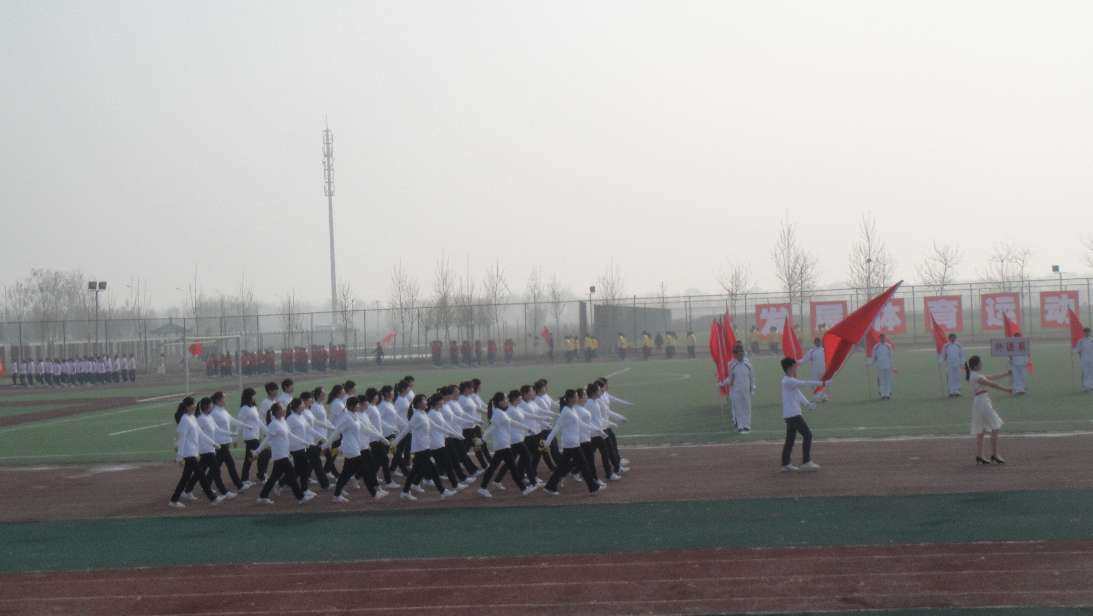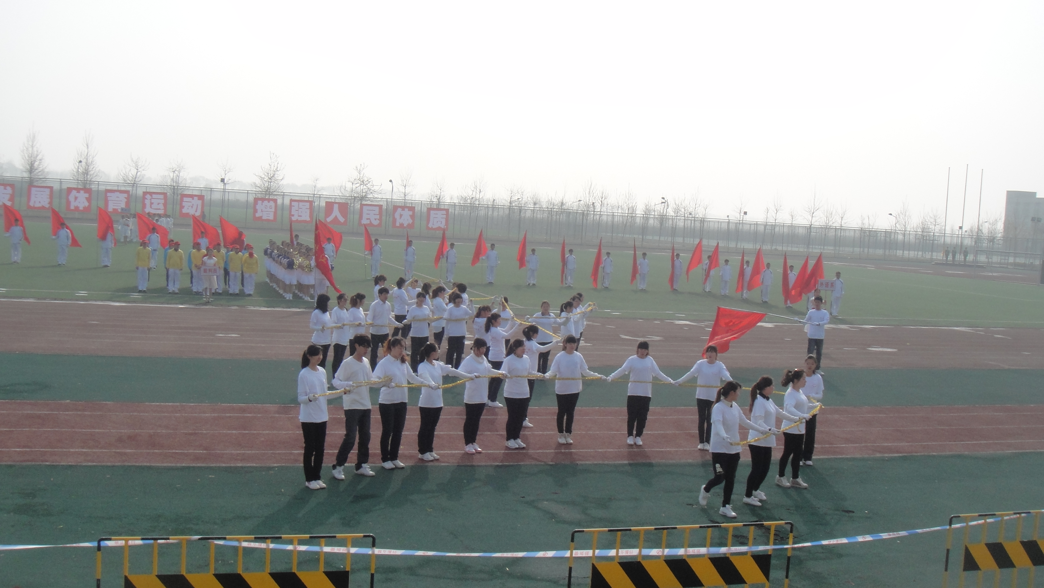 为了弘扬爱运动,发扬团结拼搏的优秀品质。秉着赛出成绩,赛出风采,丰富大学生的业余生活。我院于2013年4月20日星期六举办了全院性运动会。我系师生大力支持和配合学校工作,积极参与本次运动会。