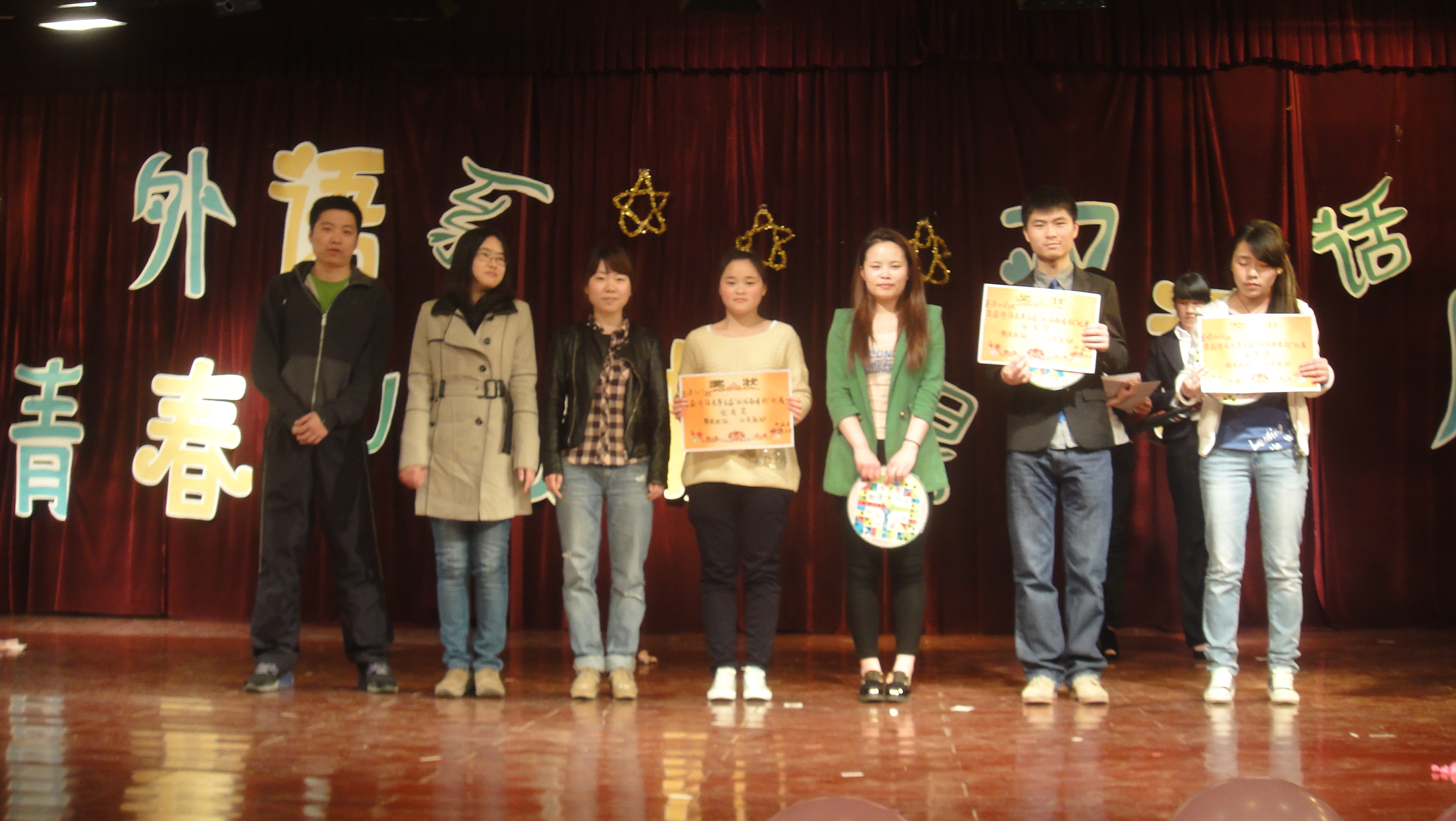 最后外语系辅导员胡永友老师发表讲话,他希望通过此次双语话剧比赛,同学们能够开拓视野,增强学习外语的自信心,培养良好的团队精神。这次晚会充分展现我系学生朝气蓬勃的精神面貌,最大限度的激发同学们对日语和英语的学习热情,同时考验了同学们的双语表达和运用能力,使同学们获得欢乐的同时,收获了更多专业知识。
