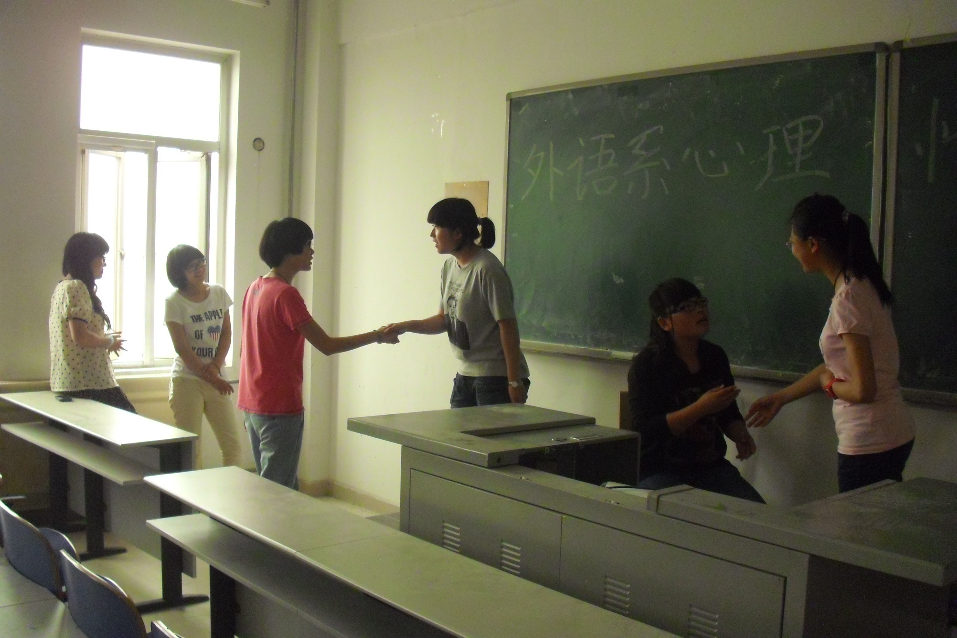 (学生记者日语1211 杨玉洁) 为了丰富同学们校园文化生活,普及心理健康知识, 5月24日中午十二点,,外语系心理情景剧表演暨心理讨论大会在老上善318举行。