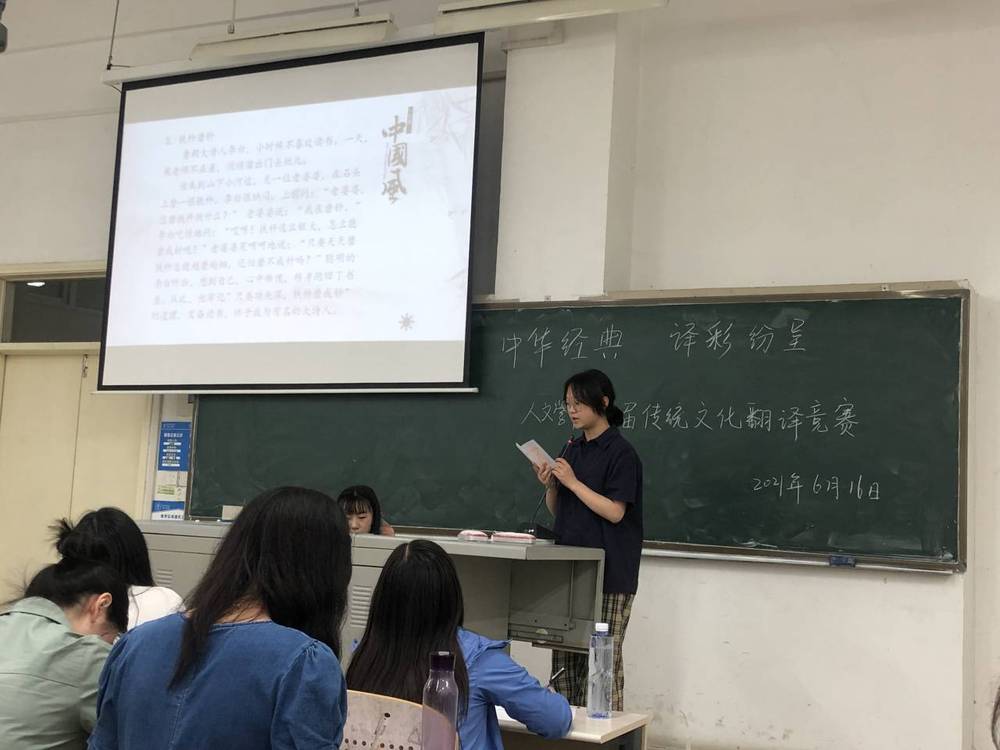 2021年6月16日,人文学院传承经典英语翻译大赛决赛于日益楼117教室成功举办,本次赛事通过使用英文翻译中国古典诗歌、中华经典成语、中华传统美德故事等方式,选拔书面、口头翻译才能兼备的同学。大赛有助于提升学生口笔译水平,调动学生用英语讲好中国故事,传播中华文化,推动中西方文化交流。