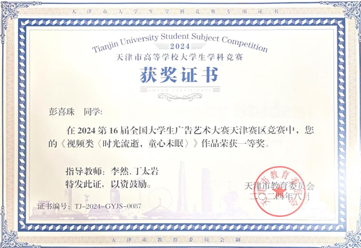天津市级获奖证书