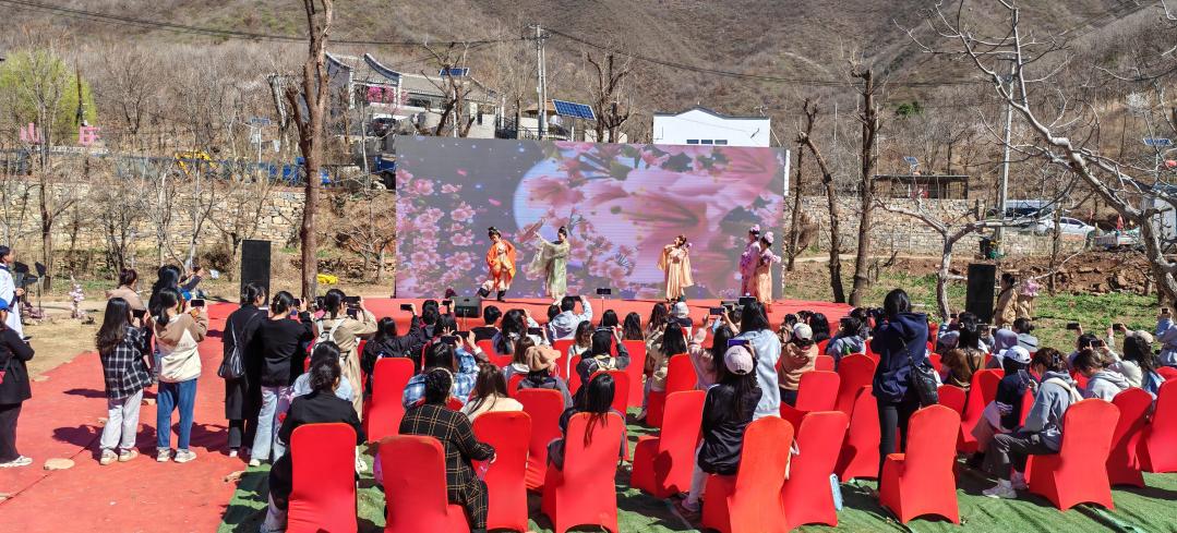 活动期间,“麻酱拌香菜”和“禾作hi~”两个学生创业团队以桃花诗会和新水场村鸡蛋产业为主题,开展近120分钟的现场助农直播。直播吸引300余位观众在线互动,收获8500+点赞,成功为当地农产品打开数字化销售渠道。这场直播不仅传播了桃花诗会的热闹氛围,更通过新媒体技术将乡村经济与消费者需求直接对接,探索出“内容传播+电商带货”的乡村振兴新模式。除直播外,其他同学分组创作短视频和互动H5作品。他们用镜头捕捉桃花娇艳、活动精彩瞬间以及乡村自然人文风光,形成一系列具有传播价值的数字内容。优秀作品将被推荐至主流媒体平台,为蓟州乡村文旅打造可持续传播的数字资产,突破传统旅游营销的时间空间限制。