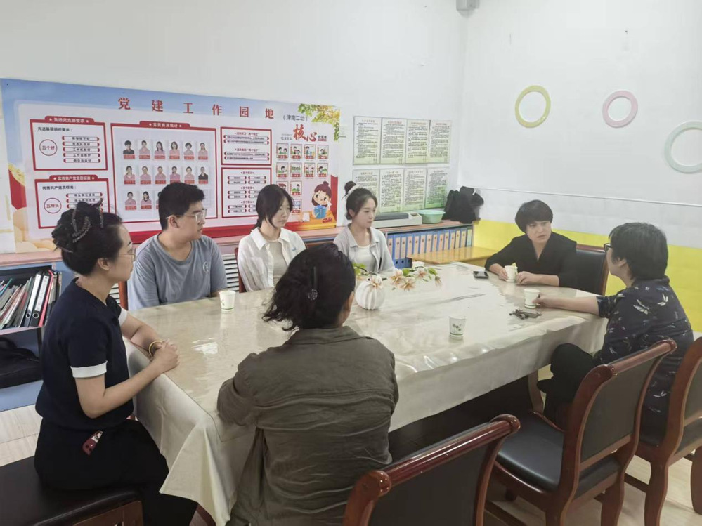 教育系老师与津南二幼实习基地负责人、实习生交流