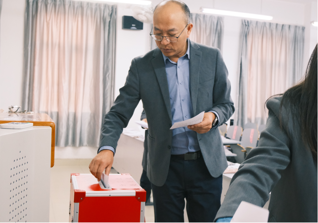 在院工会指导下,大会严格采用无记名投票差额选举方式,顺利产生12名学校教代会代表、12名学校工代会代表。同时选举产生张航、李沛、刘莎莎为二级单位教代会执委会委员及基层分会委员会委员。整场选举流程规范有序、程序严谨透明,充分彰显民主、公平、公正原则,赢得全体参会人员的一致认可。