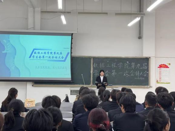 秋意渐浓,奋进当时。为明确新一届学生会工作方向,凝聚全体成员共识,激发团队工作热情,数据工程学院学生会于10月16日中午12点成功召开了第九届第一次全体大会,会议由秘书部的宗雅楠同学主持。