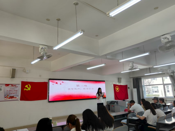 在青年代表发言环节,三位党员代表结合自身实际,畅谈历史感悟与时代责任。胡可表示:“历史的苦难铸就了今天的中国。我们从破碎山河走向钢铁长城,这是一条无数先烈用生命铺就的道路。我们新时代青年更应立志成为有理想、敢担当、能吃苦、肯奋斗的接班人。”张婧卓谈到:“历史虽远去,但其启迪永存。我们应珍惜当下,刻苦学习,以实际行动书写祖国未来的华章。”韩雨萌结合国庆阅兵的震撼场景,呼吁大家发挥模范作用,传播正能量,树立正确的历史观和价值观。