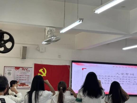 紧接着,在李畅老师的带领下,全体党员重温入党誓词;在孙浩然老师的带领下,全体团员重温入团誓词。铿锵誓言回荡会场,传递出不忘初心、牢记使命的坚定信念。