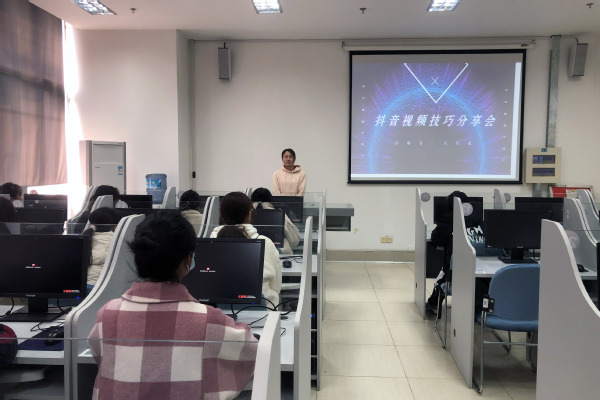 此次讲座,吴老师以抖音平台为例介绍了短视频平台的基本知识,针对视频的样式、内容策划、素材搜集、配音配乐等相关知识进行了讲解。随后介绍了剪辑软件的具体操作,怎么使用剪辑软件,怎么把找好的素材和音频制作成完整的短视频。最后针对学生制作的短视频进行分析和技术上的指导。现场气氛活跃,同学们展现出浓厚的学习兴趣,老师对现场提出的问题进行了耐心解答。