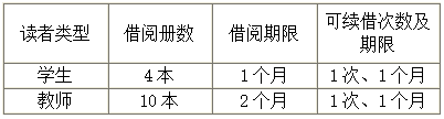 四、借阅权限及归还限期如图所示,续借可拿图书到借还处办理。