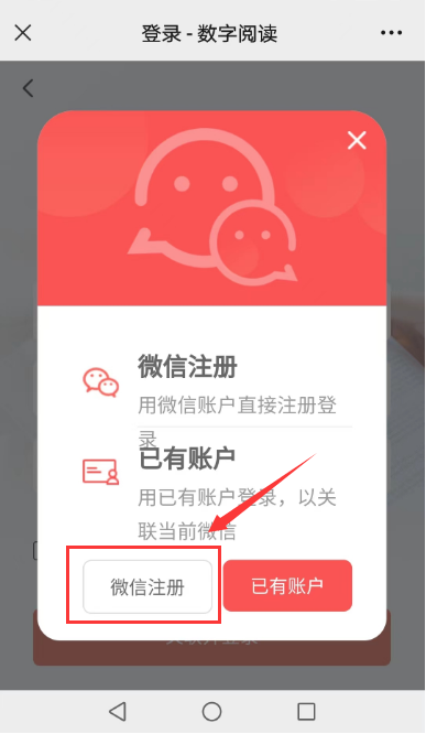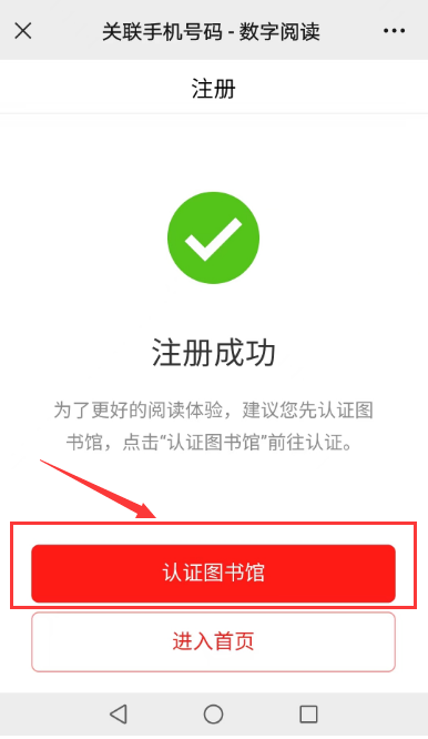 2、进入登录页面,→选择“微信注册”,输入手机号码并获取验证码后,点击“关联手机号”,→点击“认证图书馆”→点击“定位认证”。