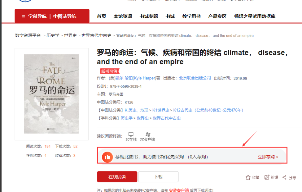 (1)PC端首页--书城标签-进入详情页-可以试读、荐购