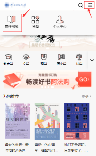 (2)微信端首页--左上角切换前往书城-进入详情页-可以试读、荐购