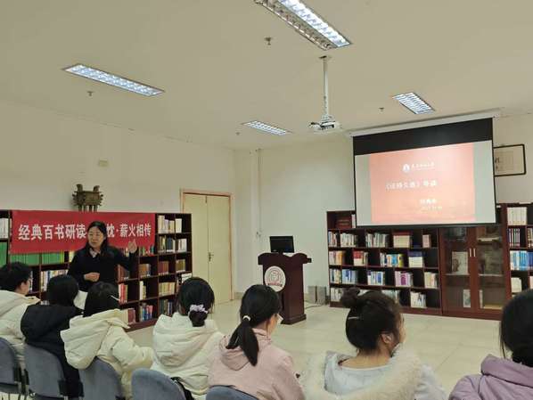 图书馆经典百书研读红色小组于12月10日在文华苑召开“经典百书研读”之师者领读——《论持久战》重点篇章导读专场。本次活动特邀专业指导教师,政治理论课部学科带头人、天津市关工委老教师工作委员会委员刘秀华教授担任主讲人,以深度解读与互动交流的形式,带领学生重温经典著作的思想魅力,探寻跨越时空的战略智慧。