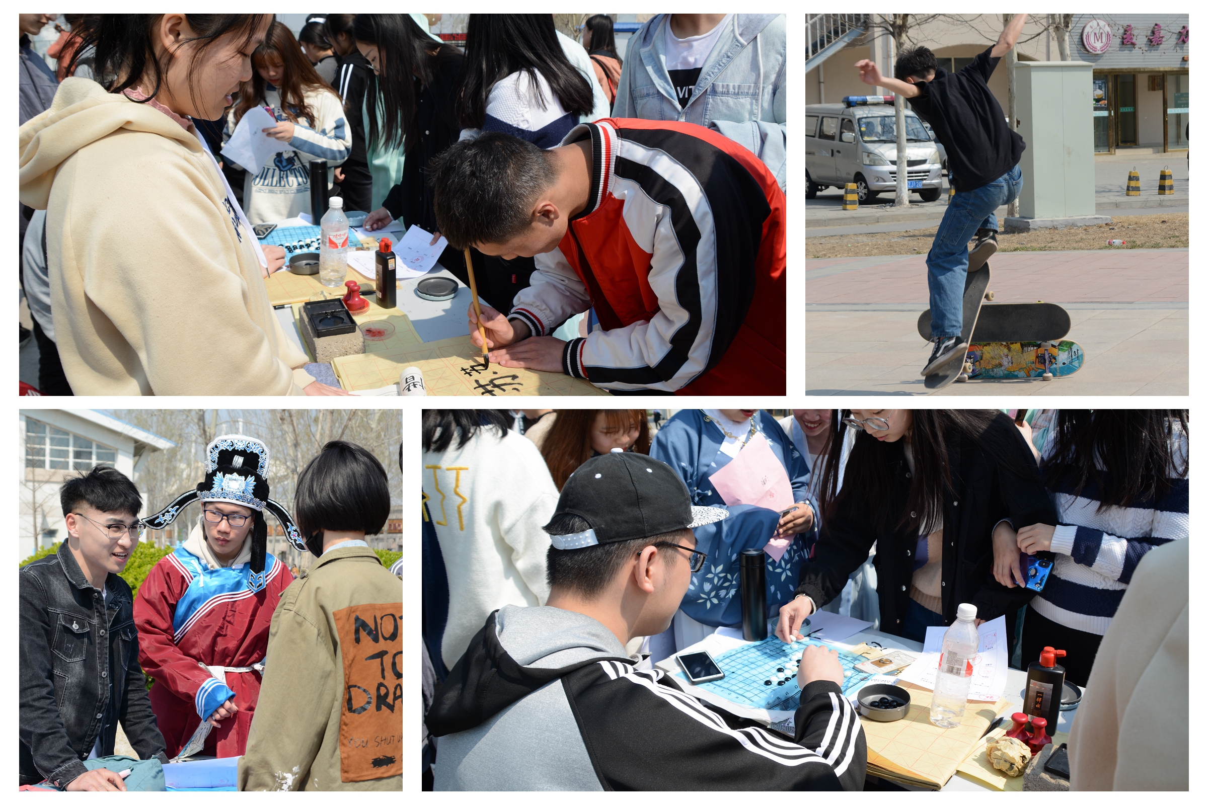 2019年4月3日,期待已久的社团文化节在我院小广场隆重开幕,我院戏曲社、津门黑马棍到社、tf轮滑社、汉韵汉文化社、滑板社等35个社团参加开幕式。