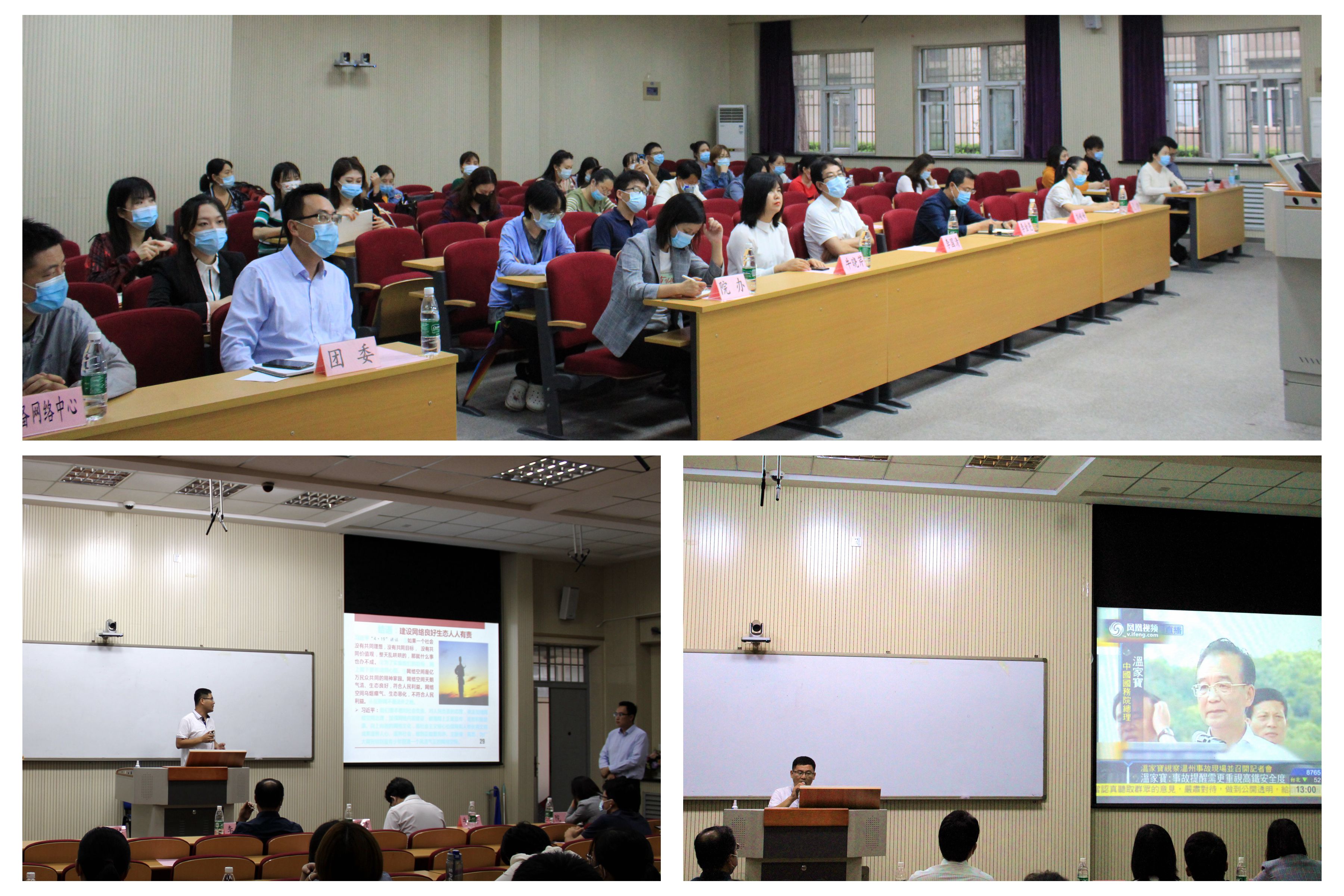 宝坻区网络安全应急指挥中心主任刘峻峰老师从高校网络安全建设重要性和如何做好网络安全防护等方面,面向教师进行了系统地讲座,同时结合自身工作经验与老师进行互动交流。区人民检察院郑新贤检察官结合经办案件,重点讲述校园贷、裸贷、电信诈骗等网络安全案例,不仅提升了学生法律维权意识,而且增强了学生“明是非、辨真假、知善恶”的反诈骗能力,同时,院学生会现场宣读“自觉遵守相关法律法规,自觉抵制网络低俗之风”的倡议书,并观看网络安全宣传片。活动最后,李金亮副院长指出要进一步加强网络安全宣传教育,创新工作形式,增强安全防范意识,提升我院网络安全工作整体水平。