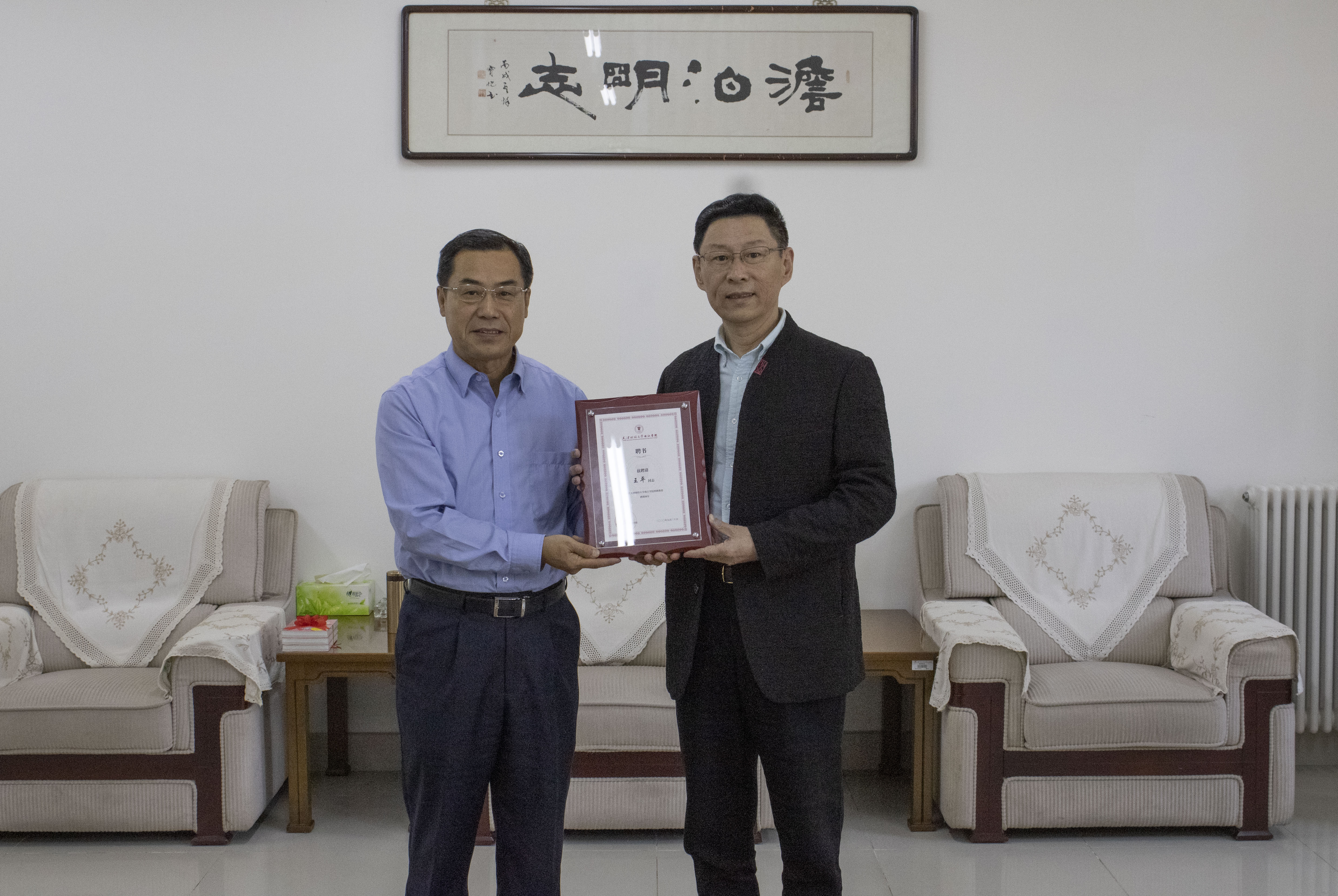 副院长李金亮给王平老师颁发特聘教授证书