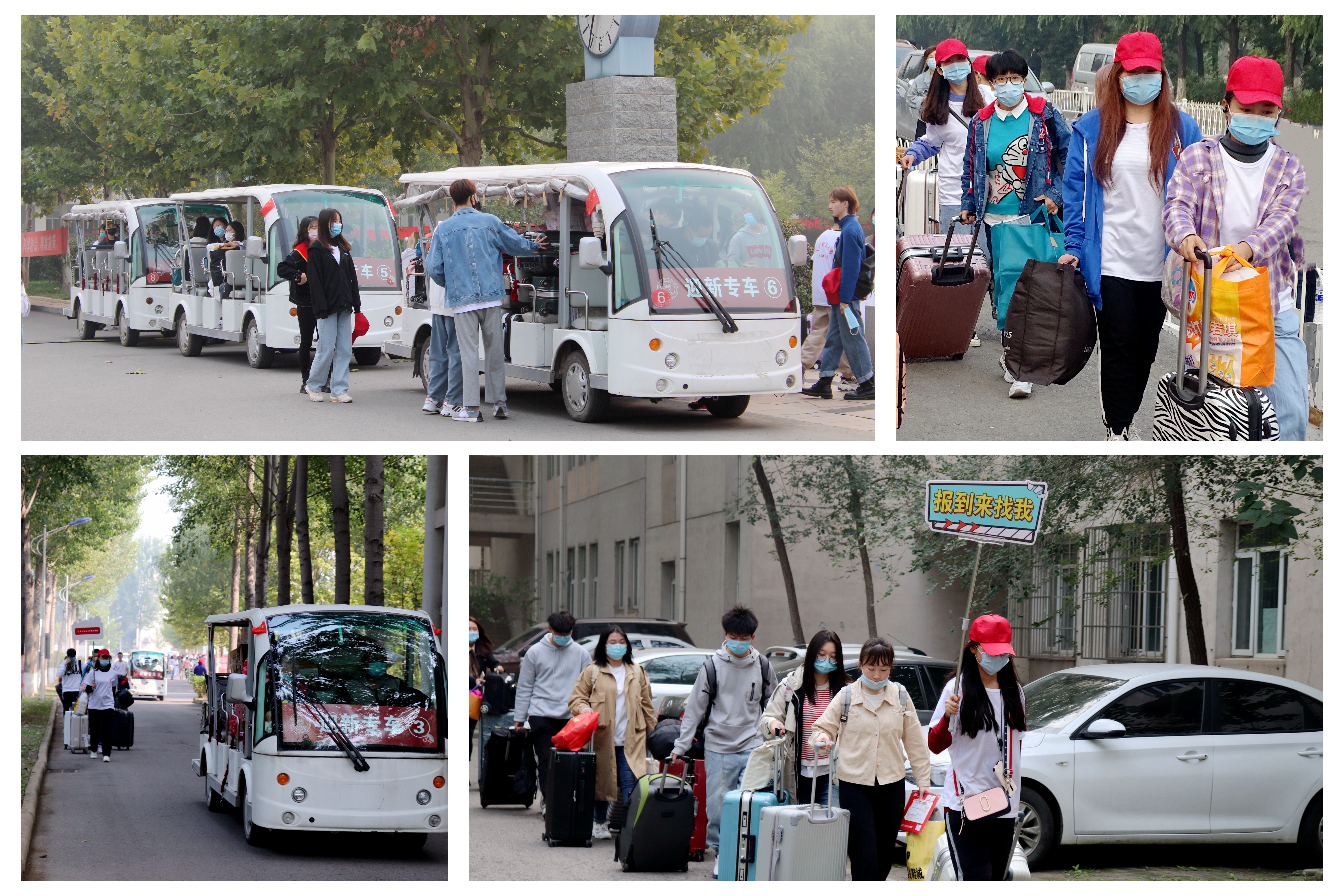 根据疫情防控要求,家长不能随同新生入校,8辆迎新专线为迎新工作的有序进行提供了坚实的保障。志愿服务点设在学院北门和新生报到处,志愿者们主要为新生提供校园引导、报到咨询、行李运送、临时休息等服务。他们头戴统一的小红帽穿梭在校园里,像一面面旗帜,飘扬着,指引着方向。他们有的在校门口为新生指路,有的带领他们去迎新点办理报到手续;有的在迎新点帮助新生有序高效完成报到流程;有的在迎新点旁边等待,送新生前往宿舍区:有的则在宿舍区帮助新生搬运行李,为新生提供了便利。