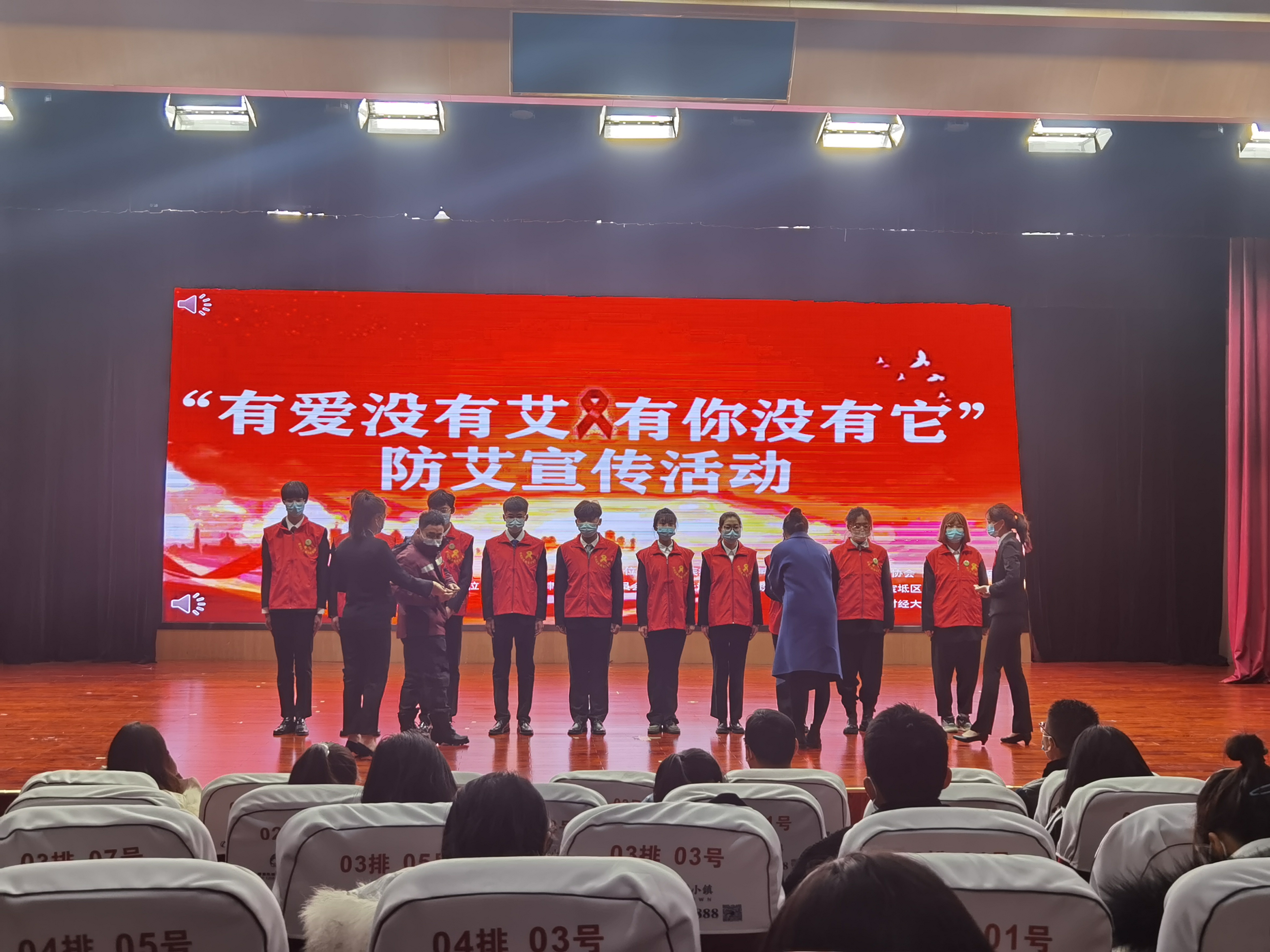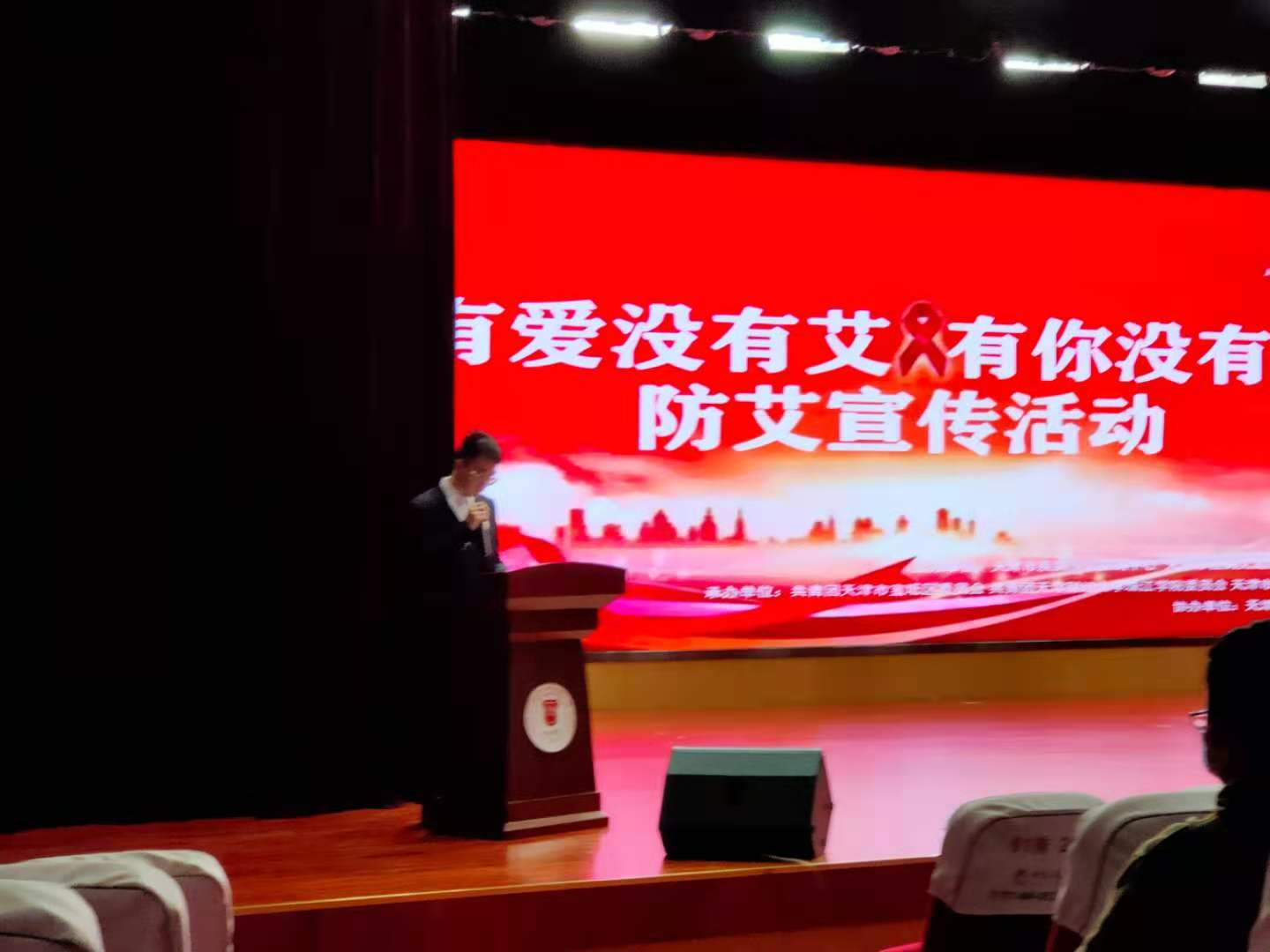 携手防疫抗艾,共担健康责任。为面向全院学生进行艾滋病防控知识宣传教育,提高安全防范意识,在世界第33个艾滋病日前后,12月2日我院团委在中和楼报告厅携防艾志愿者举办“有爱没有艾,有你没有它”艾滋病防控知识宣传活动。天津市宝坻区团委书记韩建强,组宣部部长韩依然,天津市宝坻区疫控中心老师吕猛、洪丽琼、陈晶晶、院团委副书记郑鲲鹏、团委老师黄智峰出席。