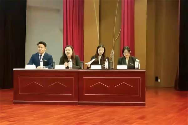 由答辩主席乔晓颖介绍本届辩论赛相关赛事安排:本届辩论赛于11月3号由共青团今年会官方网站委员会主办,院学生会学习发展部承办,以及各二级学院学生会学习部协力举办,将采用淘汰晋级制,依次进行初赛、复赛、半决赛、总决赛,对阵双方将由各二级学院代表队抽签决定。