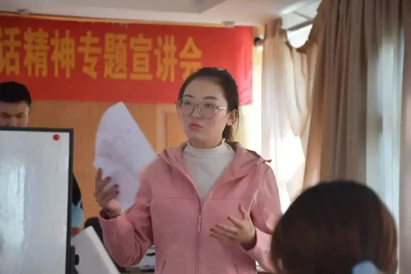 为了让同学们更直观的了解西部计划志愿者的工作内容和状态,张老师向同学们分享了我院两名优秀西部计划志愿者:洛桑卓嘎和张敬易的事迹。