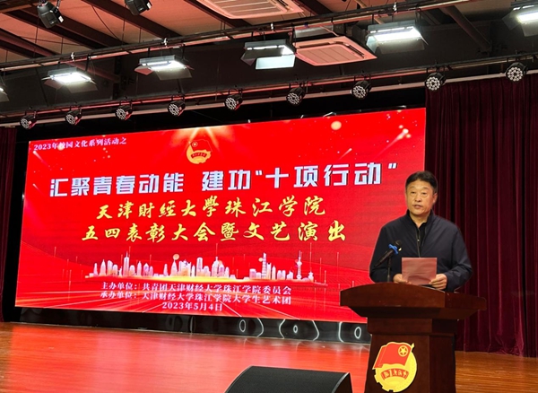 2023年新发展团员入团仪式拉开了五四表彰大会的序幕,学院领导及各部门、二级学院学工办负责人为获奖集体和个人颁奖。