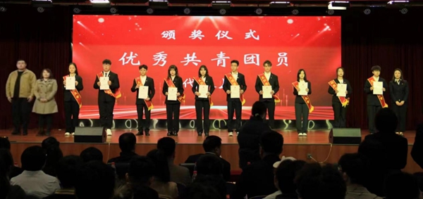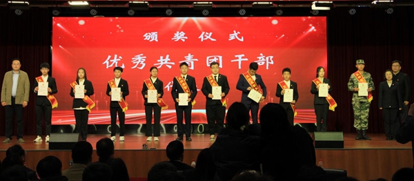 学工部、团委负责人为优秀共青团干部代表颁奖