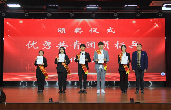 2023年新发展团员入团仪式拉开了五四表彰大会的序幕,学院领导及各部门、二级学院学工办负责人为获奖集体和个人颁奖。