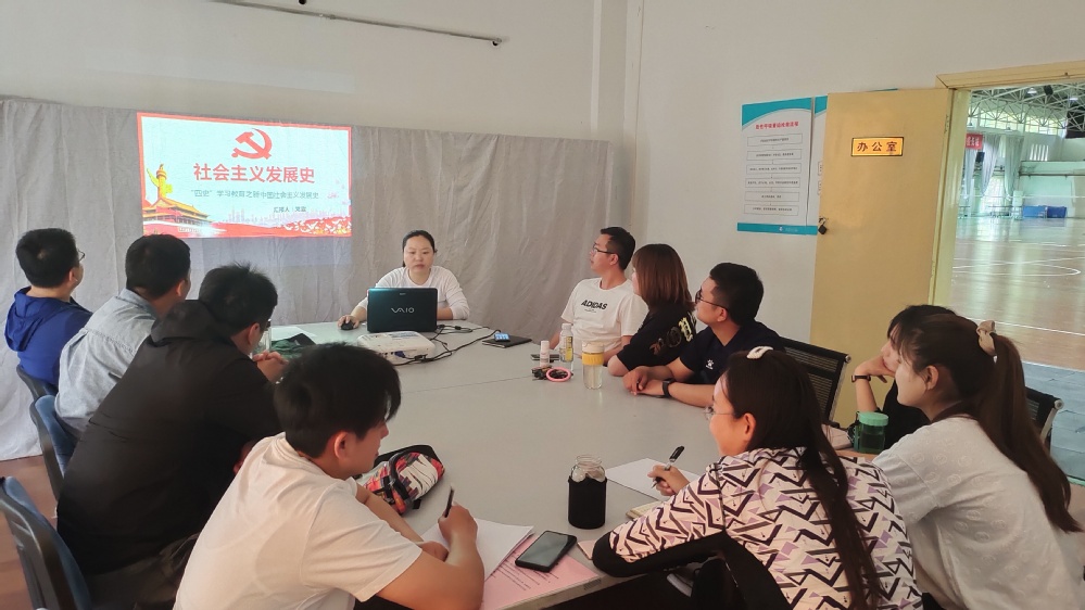 2021年5月19日下午,体育部党支部全体教师在体育馆会议室进行了五月份的党史学习。会议由何李静同志主持进行,张颖慧同志进行记录。何李静同志从改革开放的业绩与成就、改革开放成功的原因分析、改革开放的未来思考等三个方面,讲述了改革开放史;从新中国社会主义发展史的开篇、基调、探索、起承转折等四个方面,讲述了社会主义发展史。