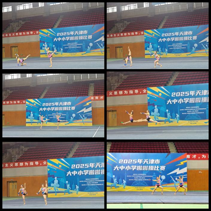本次比赛由天津市教育委员会指导,天津市学生体育联合会、天津市啦啦操运动协会联合主办,天津仁爱学院承办,共吸引了223所学校的优秀队伍同台竞技,其中报名大学30个单位,中小学193个单位,6124人次运动员。我院学子管理学院刘思涵、会计学院刘欣艳同学,在体育部张慧敏老师的专业指导下刻苦训练:从双人爵士的节奏把控、动作衔接,到花球表演的难度突破、力量展现,每一个细节都经过反复打磨,每一次排练都凝聚着汗水与坚持。比赛现场在动感旋律中展现出极强的凝聚力与艺术感染力,精彩表现引得现场掌声阵阵。