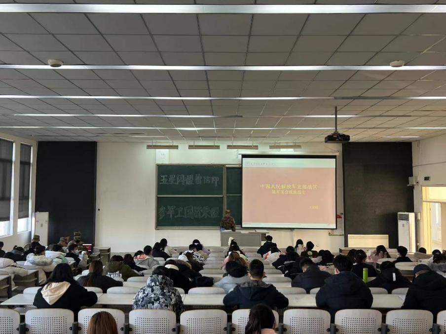 12月1日,在日新楼209教室开展了“春季征兵学子讲坛”活动,邀请到我院优秀退伍复学学生代表向意向参军入伍的同学们介绍军营生活,让同学们了解真正的部队生活。