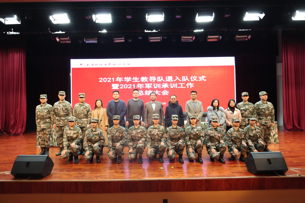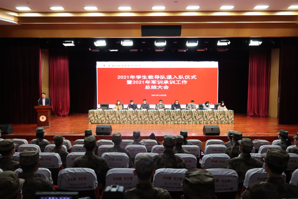 12月6日中午,2021年学生教导队军训承训工作总结大会暨队员退入队仪式在中和楼报告厅举行。学院副院长李晓鹏、党委副书记王猛、学工部部长王振杰、武装部部长吴亚娟及各二级学院学工办主任、辅导员及武装部“三队一中心”(国旗护卫队、学生教导队、应征兵员预备队、大学生军人服务中心)全体队员参加,会议由武装部部长吴亚娟主持。