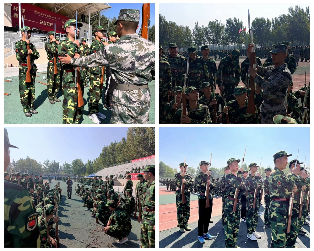 绿油油的草地上,一群身穿迷彩的活力青年整齐的站着军姿有力地踏着正步,喊着响亮的口号。努力操练,不断挑战,突破格局,成就自我。