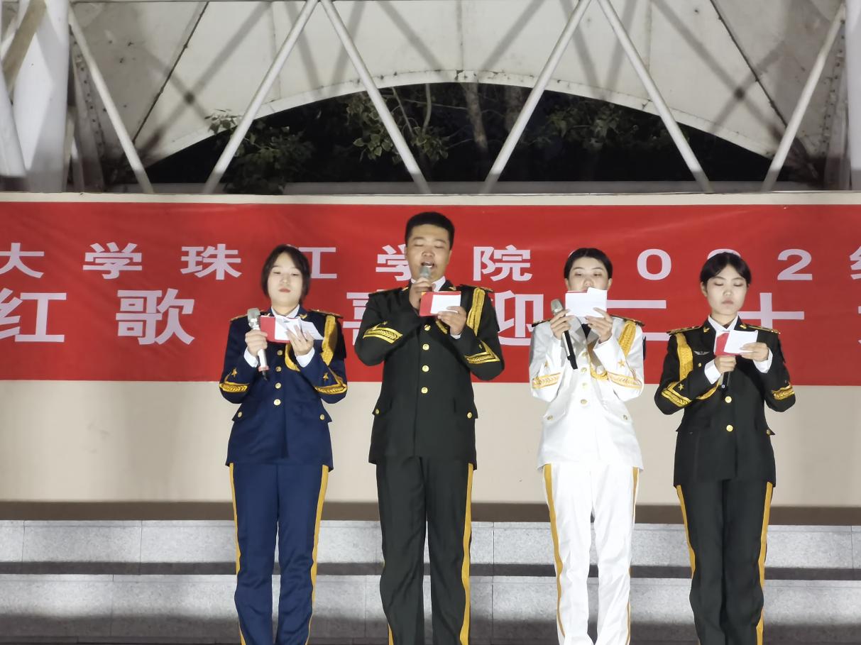 按照比赛规则,各参赛队伍需演唱固定曲目校歌及一首自选曲目。比赛中,各参赛队伍校歌的展示,充分表达了同学们对珠江校训的理解和认同,更深刻的加强了同学们主人翁意识。自选曲目的演唱环节,同学们用积极饱满的激情和高亢嘹亮的歌声赞美伟大的党和祖国。一首首经典红色歌曲在校园内久久回荡,不仅勾起对中国革命峥嵘岁月的回忆,也唱响了全体学生对祖国和学校的祝福,倾听红色歌曲,感悟先辈的艰苦奋斗精神,喜迎二十大顺利召开。