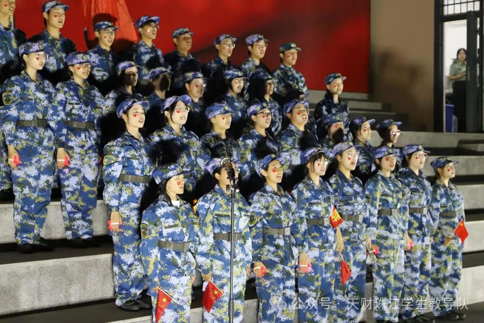 军训场上,同学们身着整齐的军装,英姿飒爽。他们用嘹亮的歌声,唱响红色经典,传承革命精神。依据比赛规则,各参赛队伍需演唱固定曲目校歌以及一首自选曲目。在比赛进程中,各参赛队伍对校歌的精彩展示,犹如璀璨星辰般,淋漓尽致地传达出同学们对珠江校训的深刻理解与高度认同。这一过程,更是如春风化雨般,进一步强化了同学们的主人翁意识,使他们对校园的热爱与归属感愈发醇厚。而在自选曲目的演唱环节,同学们则以积极饱满、如火焰般炽热的激情,以及高亢嘹亮、似穿云之箭般的歌声,纵情赞美伟大的党和祖国。那激昂的旋律仿佛是心灵的翅膀,带着同学们的崇敬与热爱,在历史的天空中翱翔,诉说着对党和祖国的无尽忠诚与赞美之情。