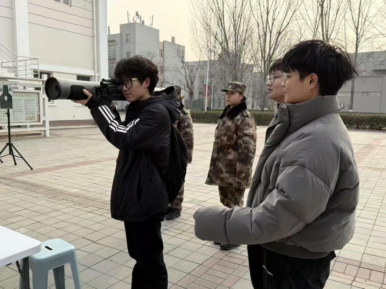 在40火箭筒体验区,1:1还原的40火箭筒模拟教具格外引人注目。学生教导队队员全程耐心指导,从握筒姿势到瞄准要领,再到发射流程,每一个细节都讲解得细致入微。同学们在安全操作中,直观感受到重型装备的强大威力,对地面作战武器有了更深刻的认识,仿佛能想象到战场上火箭筒发射时的震撼场景。