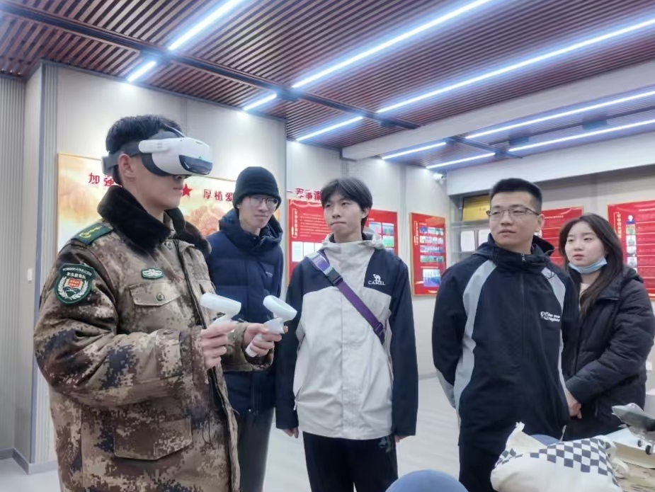 VR眼镜体验区设置了“飞夺泸定桥”“航行地球”、心肺复苏等丰富多样的项目。借助科技的力量,同学们仿佛穿越时空,身临其境地感受革命先辈们在艰苦环境中英勇奋战的担当精神,在技能模拟中学习应急救护知识。这种新颖的体验方式,让国防教育既生动有趣又实用有效。