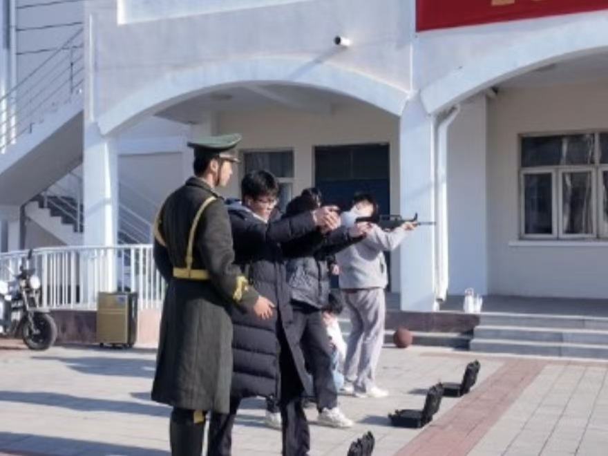 踏入模拟射击区,92式模拟枪、95式模拟步枪整齐排列,搭配模拟电子靶,仿佛置身于真实的射击战场。同学们在学生教导队指导下,规范操作,每一次扣动扳机,都感受到射击的严谨与精准,仿佛能听到子弹呼啸而出的声音,体验到军人射击时的专注与果敢。
