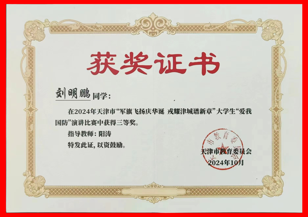 2024年天津市大学生“爱我国防”演讲比赛