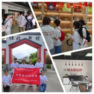 实践第四站,我们走访了恒北村,了解到其主要发展以梨为枢纽的特色旅游产业与文创产业。恒北村利用当地优势,培养了包括早酥梨、翠冠梨等优良品种,并且对梨进行深加工,生产了梨酒、梨膏糖等产品。在旅游产业方面,恒北村依托生态梨园,建设梨园风光、生态民宿、养生温泉、非遗文化等,大力发展乡村旅游产业,努力培育“春有花、夏有绿、秋有果、冬有泉”的乡村旅游特色,实现富民强村战略。在文化方面设有文创街,大丰瓷刻、恒北梨文创、摄影等文化创客入驻其中,采用下店上坊的模式,集展示销售制作于一体,通过电商直播带货等渠道推广一系列文创旅游产品,促进农文旅融合持续发展。