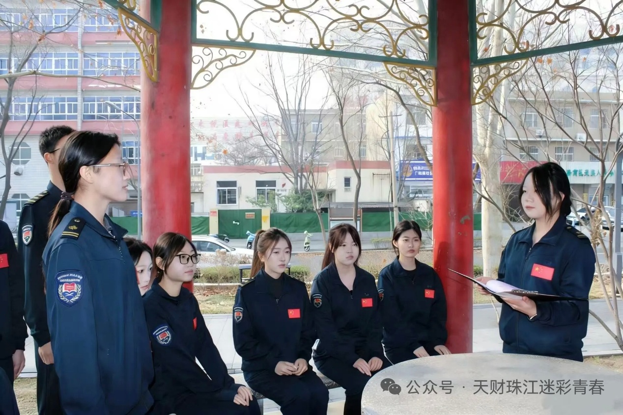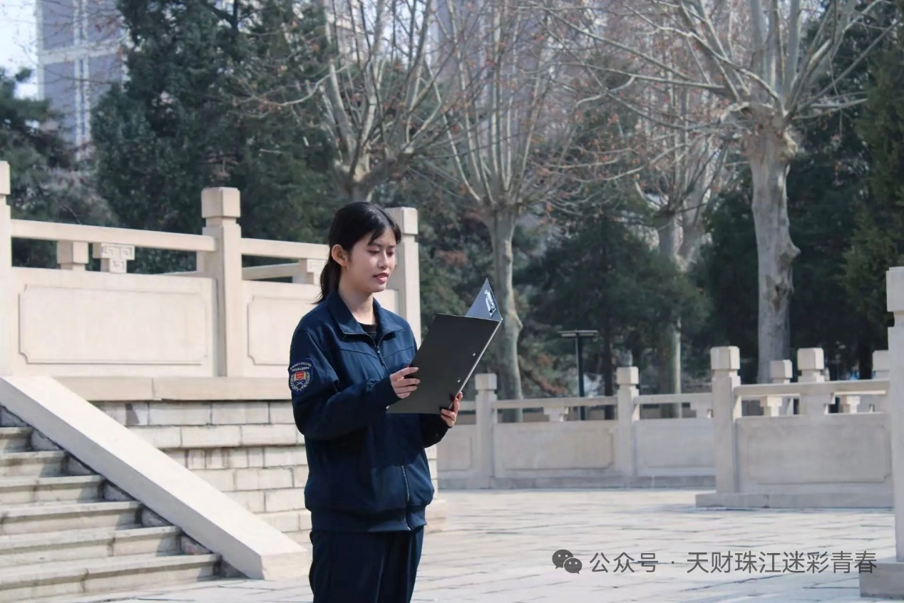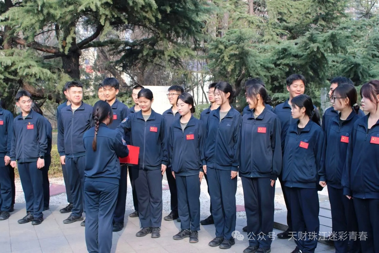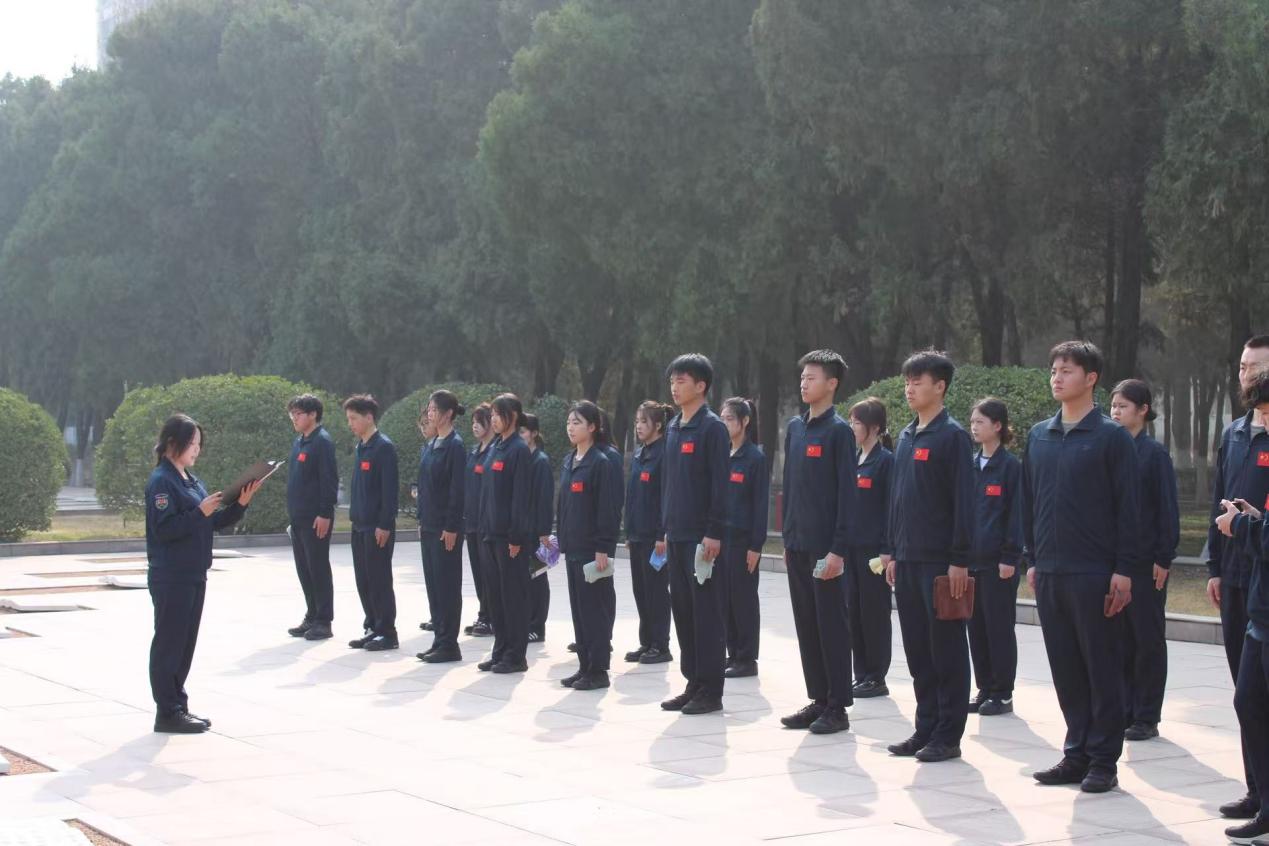 在纪念碑前,学生教导队马笑涵、大学生军人服务中心孙梦涵两位同学依次发言。马笑涵同学以冀东革命先烈英勇事迹为切入点,号召青年学子铭记历史、报效祖国;孙梦涵同学结合新时代青年责任,阐释革命精神的现实意义,强调从先烈身上汲取信仰力量。两位同学的发言情真意切,激发了在场师生的爱国热情与历史责任感。活动最后,在学生教导队朱家岐的带领下,全体成员重温青年强军誓词,誓言铿锵。