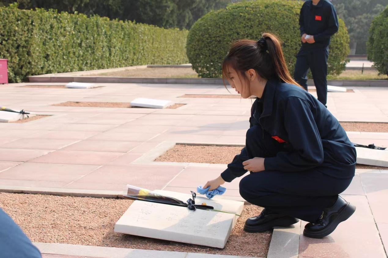 随后,师生参观纪念馆,深入了解冀东革命历史。在烈士墓区,全体成员擦拭墓碑、敬献鲜花,庄严肃穆。
