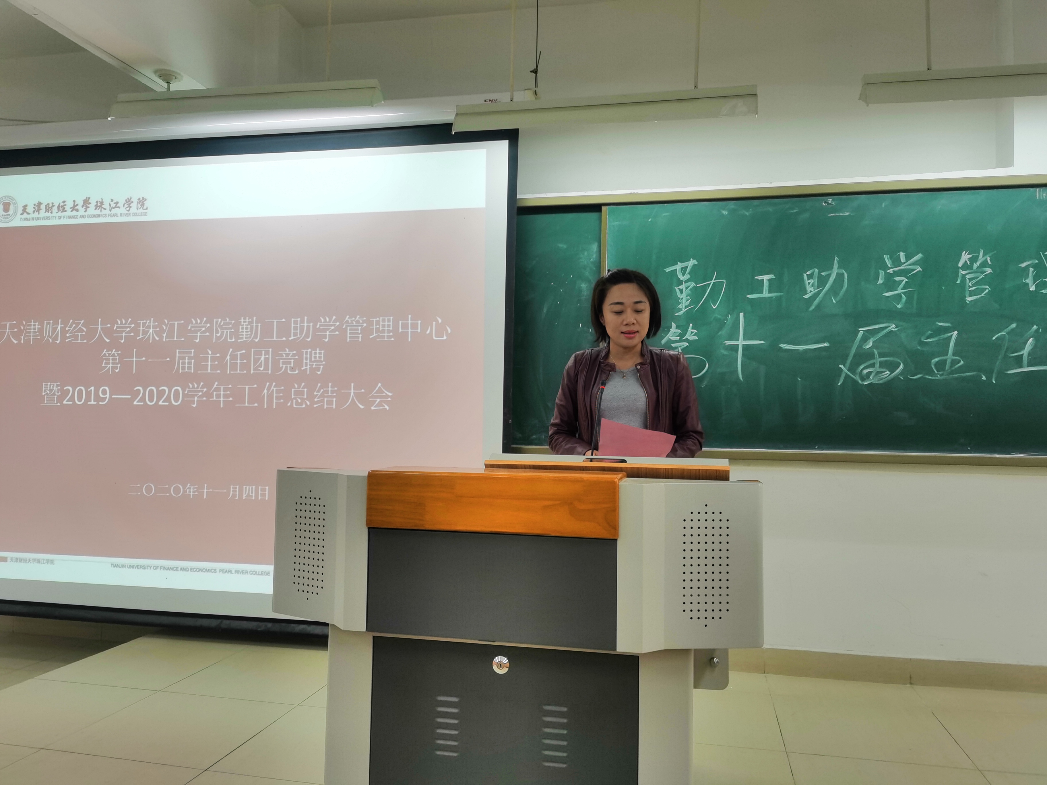 2020年11月4日,勤工助学管理中心主任团换届大会在新上善302隆重举行。学生工作部周圆部长及张传杰、张亚欢、阳涛老师出席大会并担任评委。勤工助学管理中心第十届主任团、勤工助学管理中心140名学生代表参加。